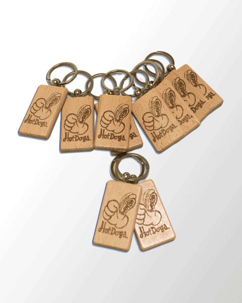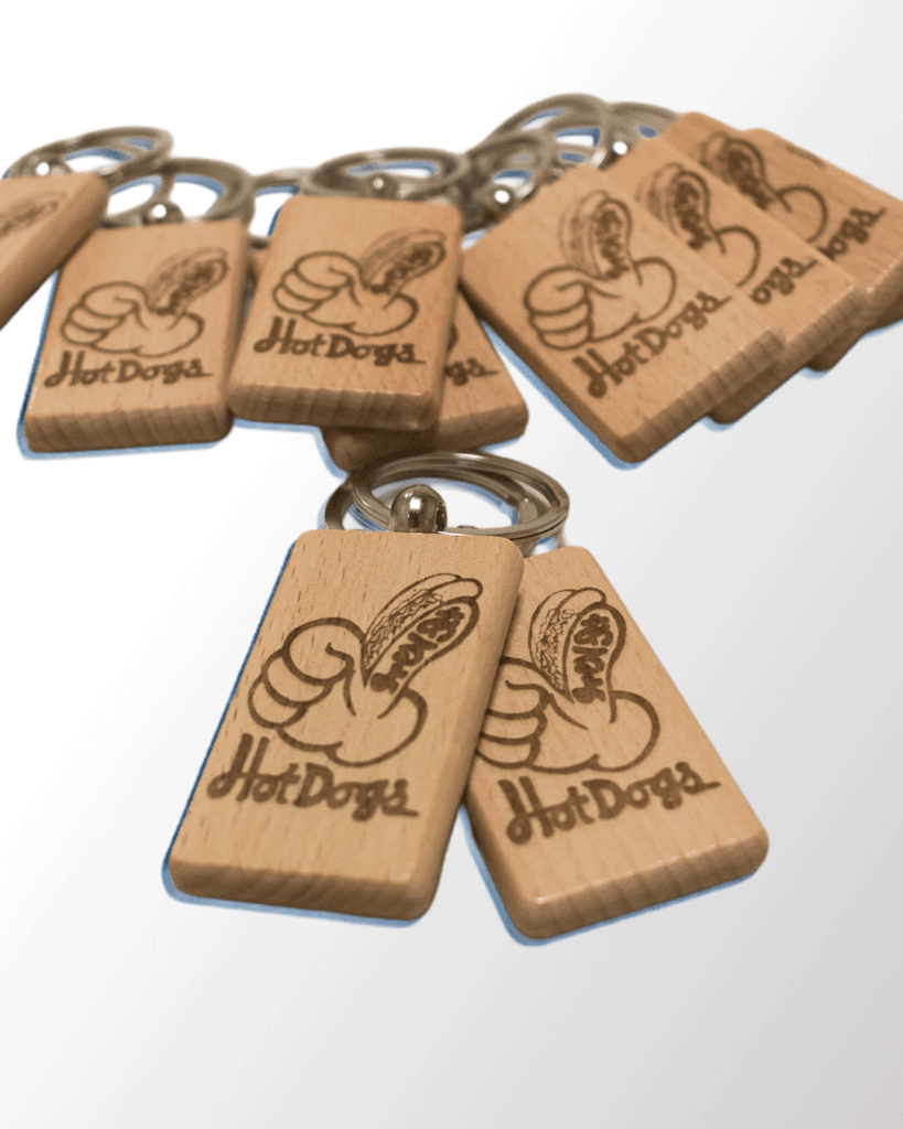 | お客様要望 | 天然木でロゴ入りのキーホルダーをご要望 |